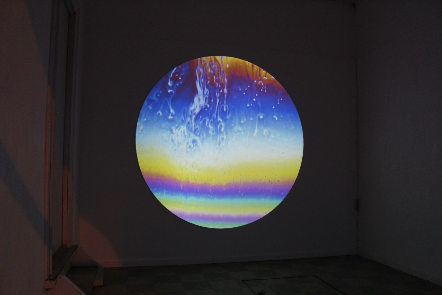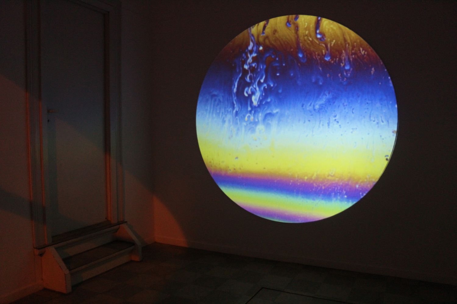 The collision between the two philosophies, ‘correlationism’ and ‘speculative materialism’, is metaphorically shown in the exhibition, by making use of a concept from the world of physics, called thin-film interference. It is the interference that occurs when light strikes a soap film and breaking the surface. In this meeting, creating a ripple effect, much like the aforementioned surface of a portal.